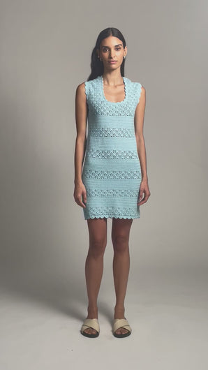 - Scalloped crochet edge at armhole/bottom hem and feminine scoop neck and back key-hole detail + petite button closure