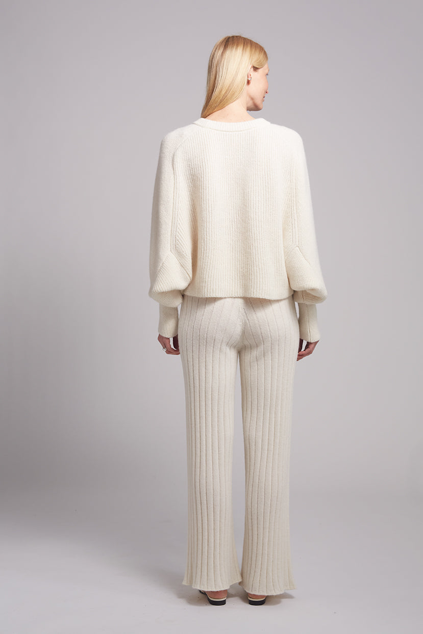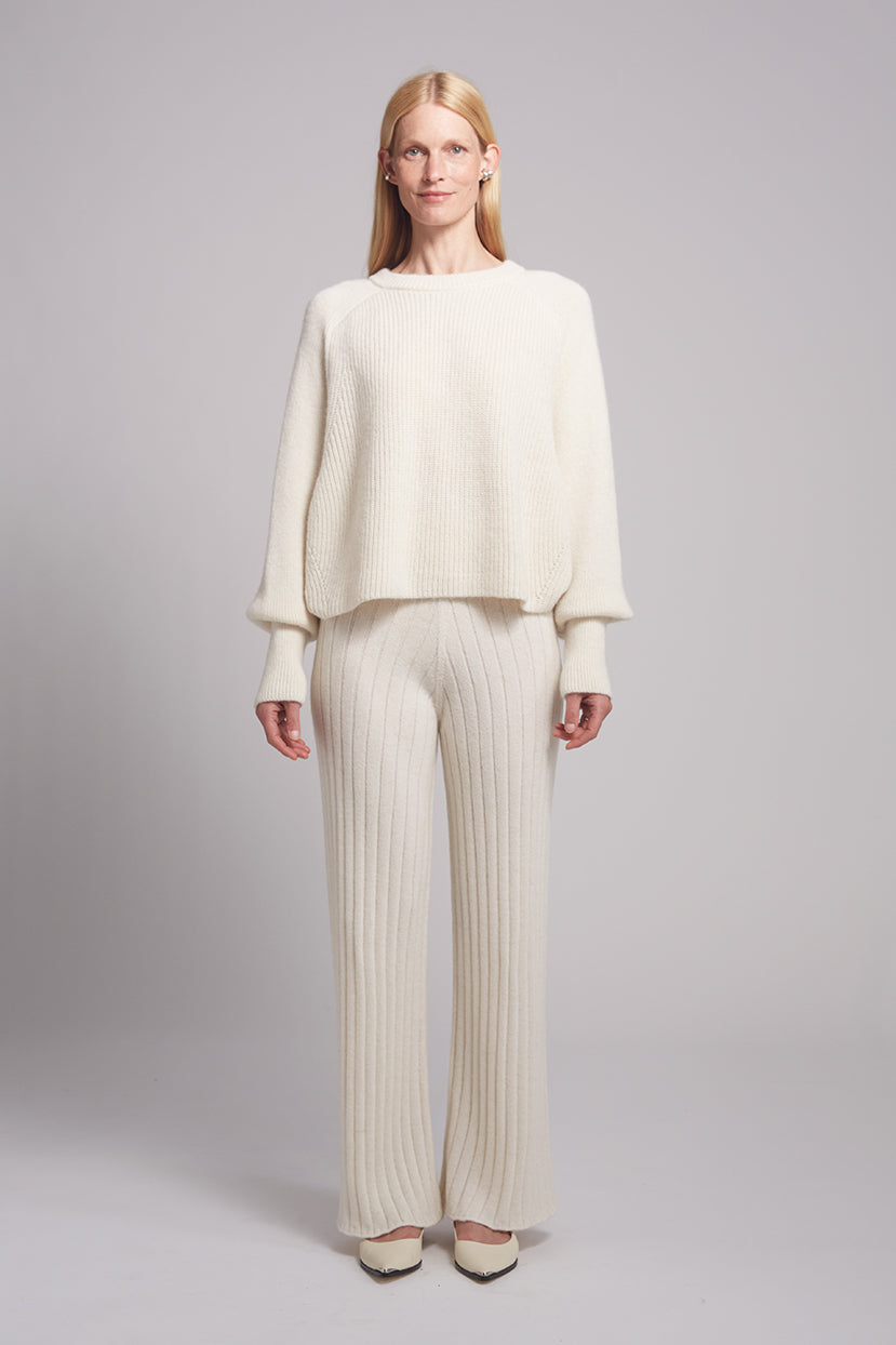 Marla is an easy, pull-on-and-go pant featuring a high waist, lean-fit hip, and straight, relaxed leg for effortless style. Knit in a wide flat rib stitch from the softest air-spun alpaca, it’s a must-have staple for any wardrobe. Pair Marla with the Ariel Sweater for the ultimate cocooning, elevated look.