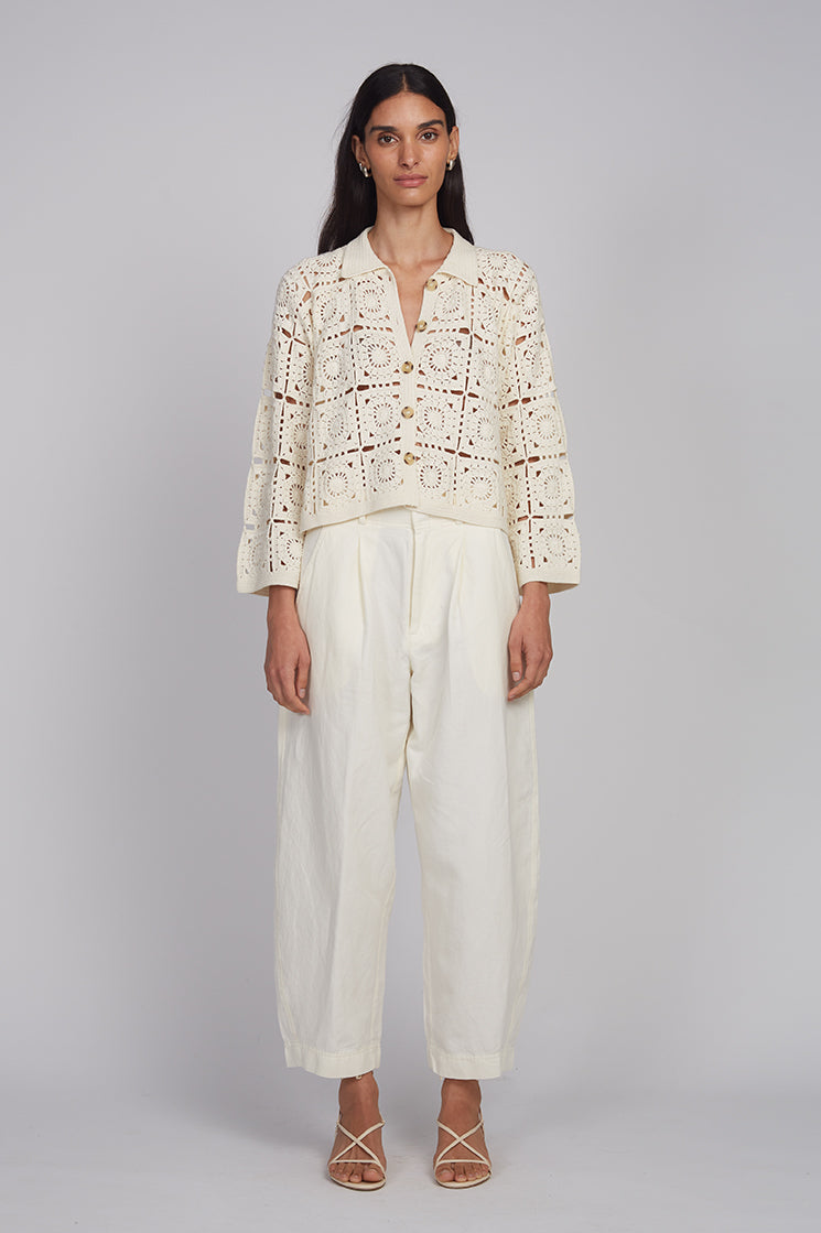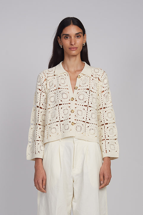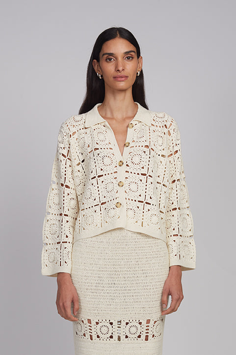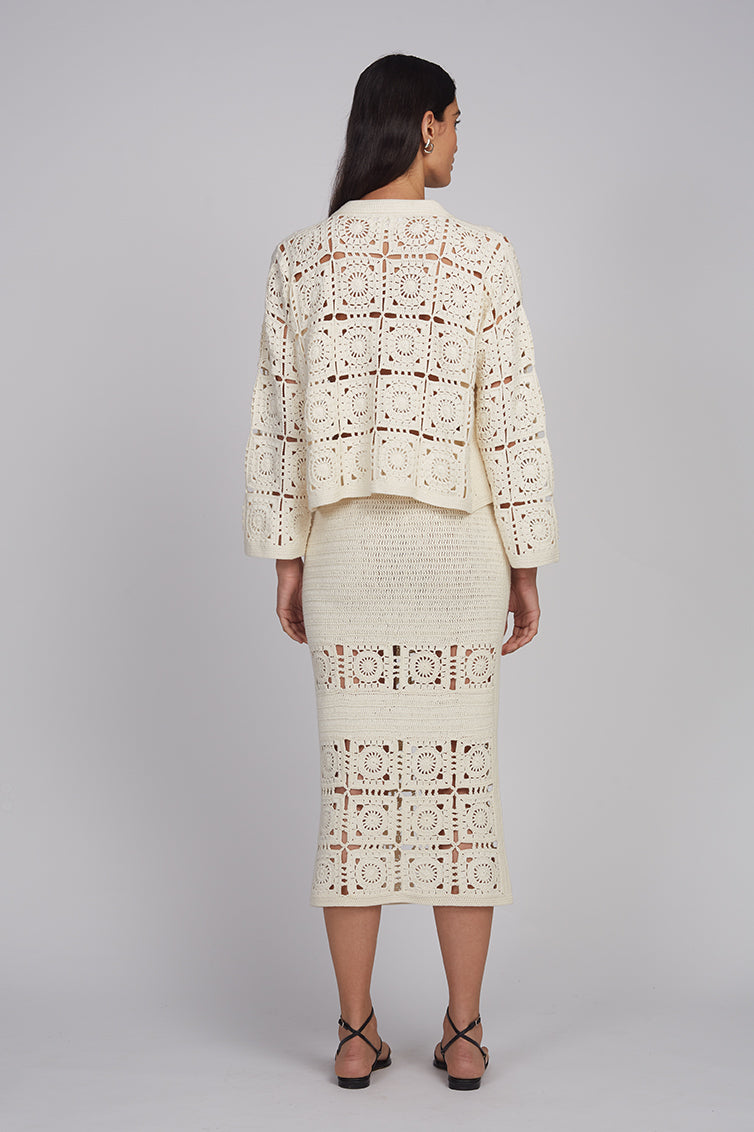The Tasha Crochet Crop Jacket is meticulously hand-crocheted in a bold, sculptural interpretation of the classic “grandmother squares” stitch. Designed for effortless versatility, it may be worn alone, layered, or styled with the matching Iola Top and Jana Skirt for a refined, head-to-toe statement. Equally suited to special occasions and elevated everyday dressing, Tasha is defined by modern craftsmanship, feminine strength, and ease.