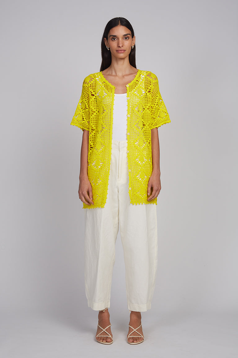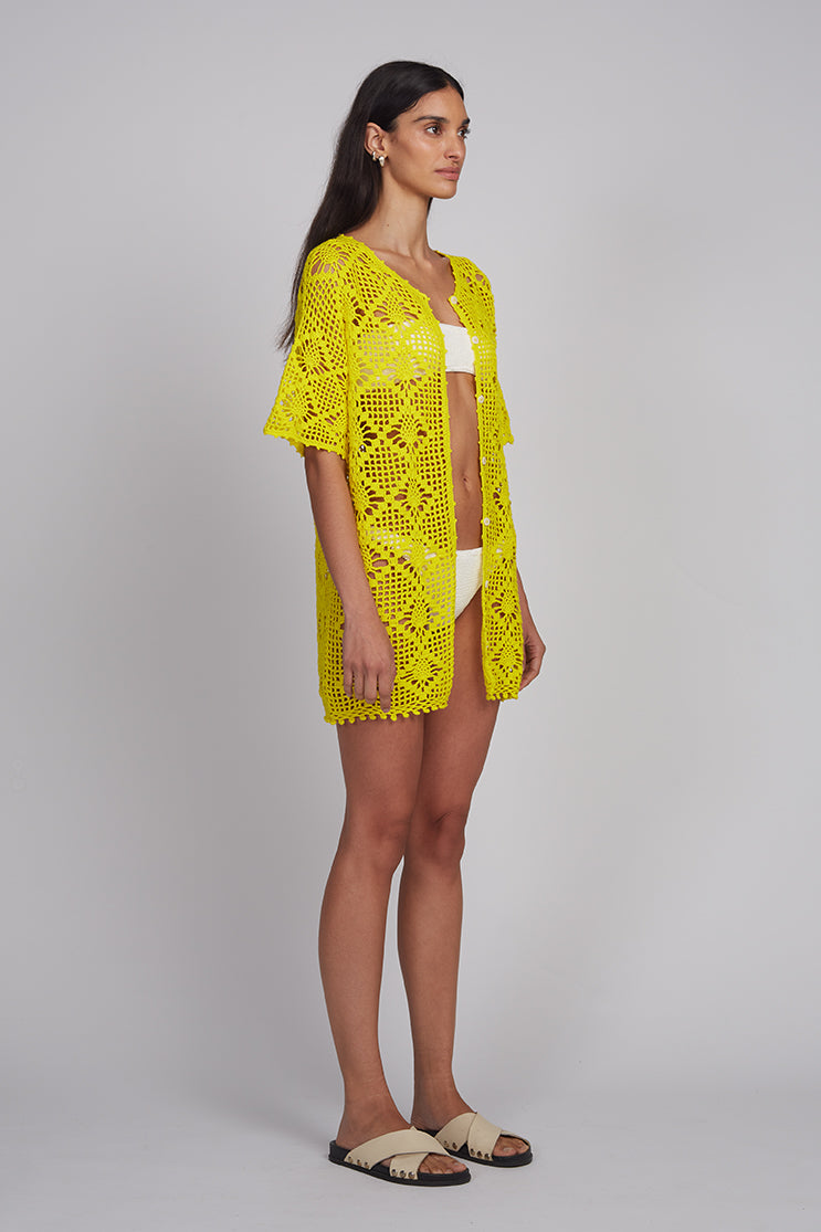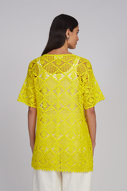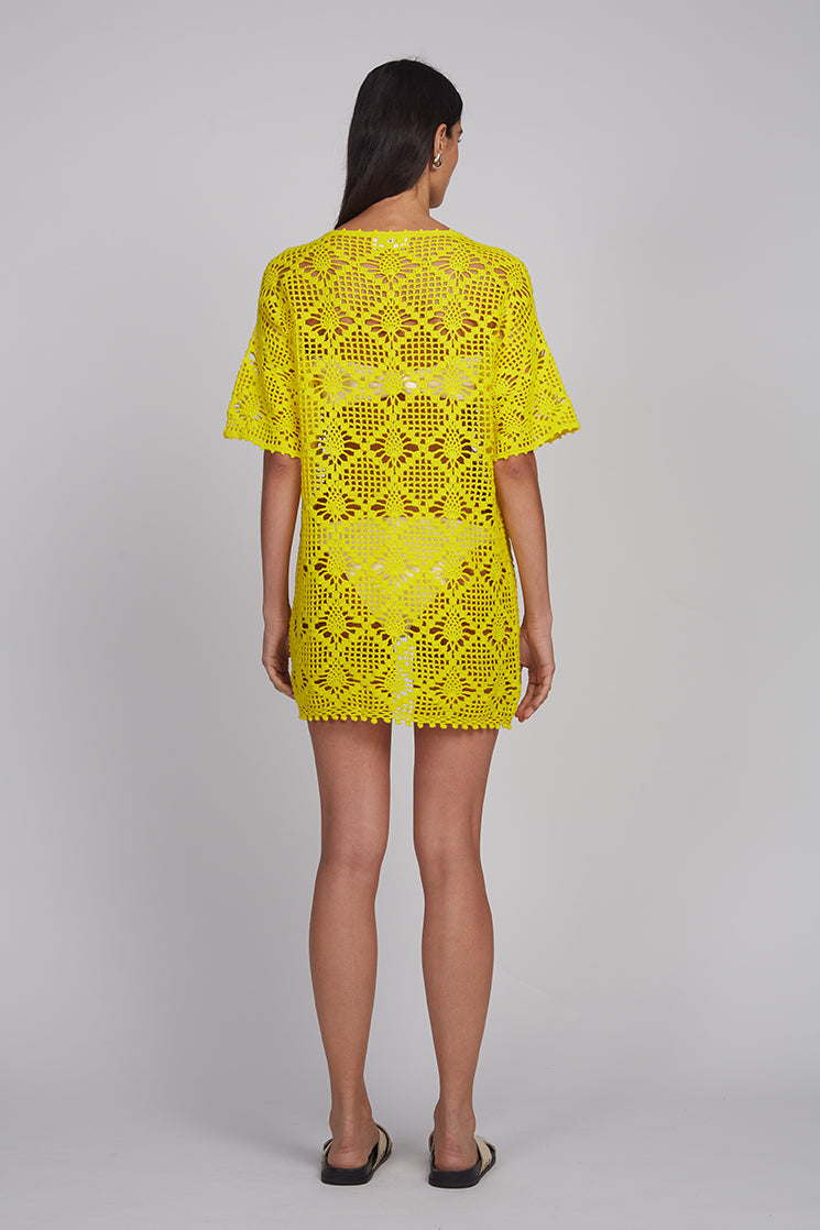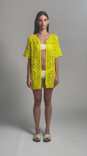 The Violet Crochet Cover-Up is meticulously hand-crocheted in a bold diamond stitch, creating rich texture and artisanal depth. Designed for effortless versatility, it can be worn solo as a tunic over swimwear or layered over denim or tailored trousers for a polished daytime look. Evoking the ease of high summer, this piece exudes a refined vacation sensibility.